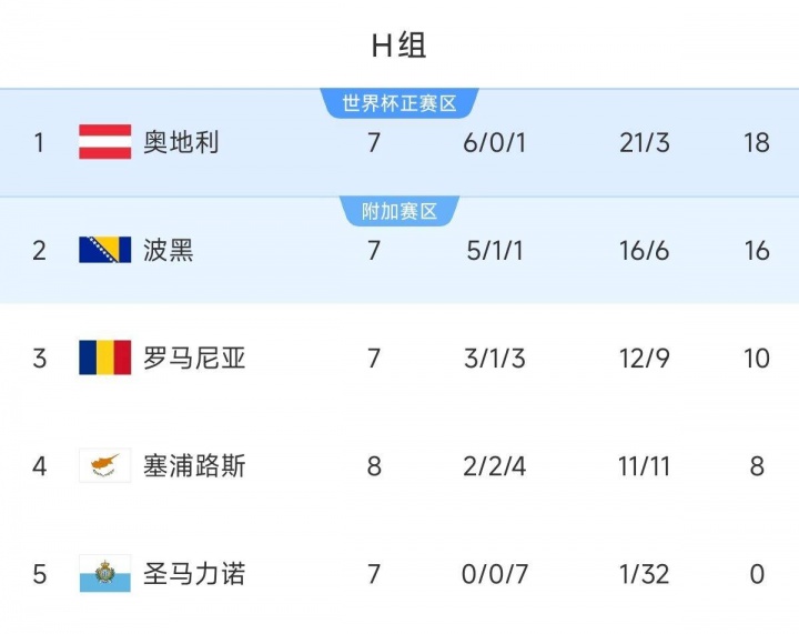 11月16日讯 今天凌晨为止的世初赛欧洲区小组赛H组比赛,波黑3-1校服罗马尼亚,提前一轮锁定了附加赛席位,要是末轮校服奥地利,波黑将以小组头名纵贯2026寰宇...