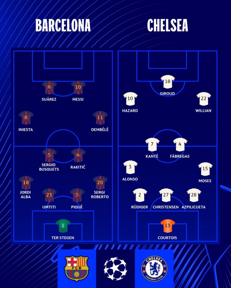 11月25日讯 北京时分未来凌晨,切尔西将在欧冠联赛阶段第5轮比赛中主场对阵巴萨。 欧冠官方更新社媒动态,晒出2018年两队前次交手时的首发威望,预热这场焦点之战。 巴萨与切尔西前次交手是17-18赛季的欧冠1/8决赛次回合比赛,巴萨主场3-0完胜切尔西,两回合总比分4-1晋级。 巴萨首发威望 特尔施特根;阿尔巴、乌姆蒂蒂、皮克、罗贝托;布斯克茨、拉基蒂奇、伊涅斯塔、登贝莱;苏亚雷斯、梅西 切尔西首发威望 库尔图瓦;吕迪格、克里斯滕森、阿斯皮利奎塔、马科斯·阿隆索、摩西;坎特、法布雷加斯;阿扎尔、吉鲁、威廉 |