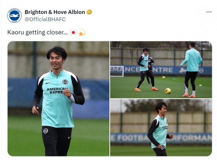 11月16日讯 布莱顿官方晓示,队内边锋三笘薫复原检会。 布莱顿社媒晒出三笘薫的相片,说明这位日本挫折手复原检会,配文:“三笘薫距离复出更近了。” 三笘薫本赛季...