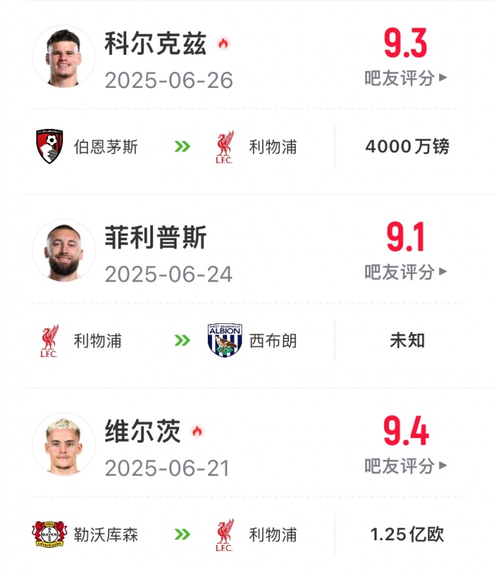 08月16日讯 英超揭幕战,利物浦4-2顺服伯恩茅斯。利物浦耗尽9500万欧签下的埃基蒂克发达出色,英超首秀就传射立功,并当选全场最好球员。 在7月24日利物浦官宣签下埃基蒂克时,辩驳区不少质疑声。吧友们仅给埃基蒂克的转会打出6.3的评分,评分呈现南北极分化趋势,远低于维尔茨的9.4分和科尔克兹的9.3分。