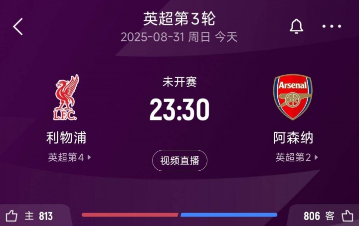 08月31日讯 英超第3轮比赛,热刺0-1伯恩茅斯,开赛两连胜遭已矣。 热刺输球后,英超还剩下利物浦和阿森纳两支全胜的球队。而在今晚23:30,两队将迎来正面交锋。 |