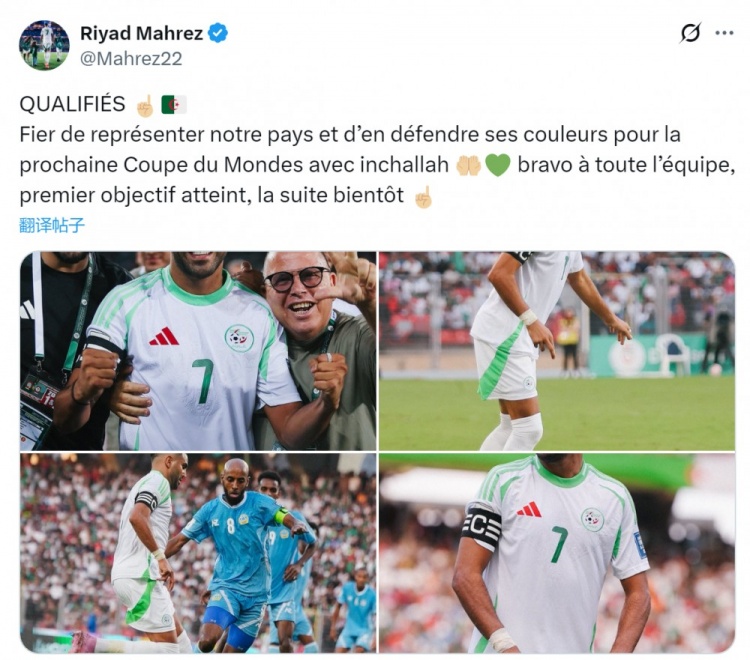 10月10日讯 世初赛非洲区比赛,马赫雷斯传射立功,匡助阿尔及利亚3-0打败索马里,赢得宇宙杯参赛经验。 马赫雷斯社媒晒出比赛像片,并写谈:“晋级宇宙杯!很红运能代表故国出战,捍卫咱们的荣耀,晋级下届宇宙杯!愿真主保佑🤲🏼💚祝愿全队,首个主义已兑现,新征途行将起航。” |