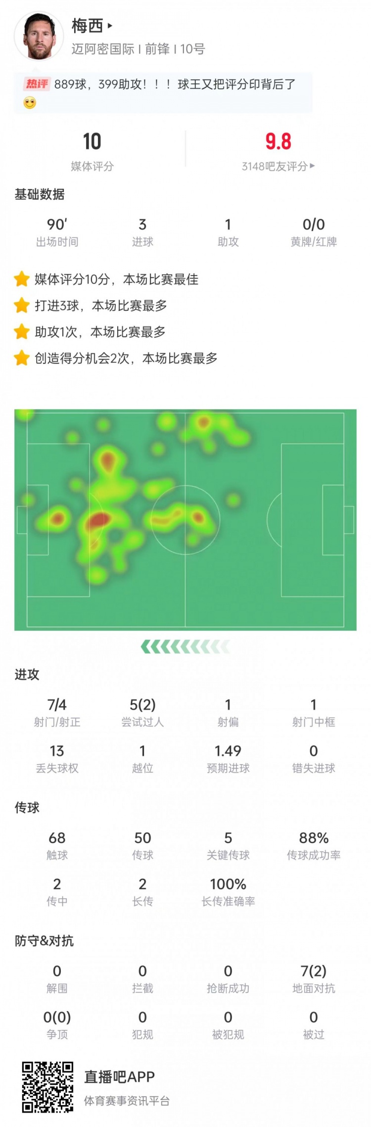 10月19日讯 北京期间今天上昼进行的好意思职联比赛,梅西3射1传,匡助迈阿密外洋客场5-2打败纳什维尔。 梅西本场比赛数据 出场期间——90分钟 进球——3 助攻——1 射门——7(射正4) 尝试过东谈主——5(得手2) 射偏——1 射门中框——1 丢失球权——13 越位——1 预期进球——1.49 触球——68 传球——50 要道传球——5 传球得手率——88% 传中——2 长传——2(准确率100%) 大地回击——7(得手2) 媒体评分——10 |