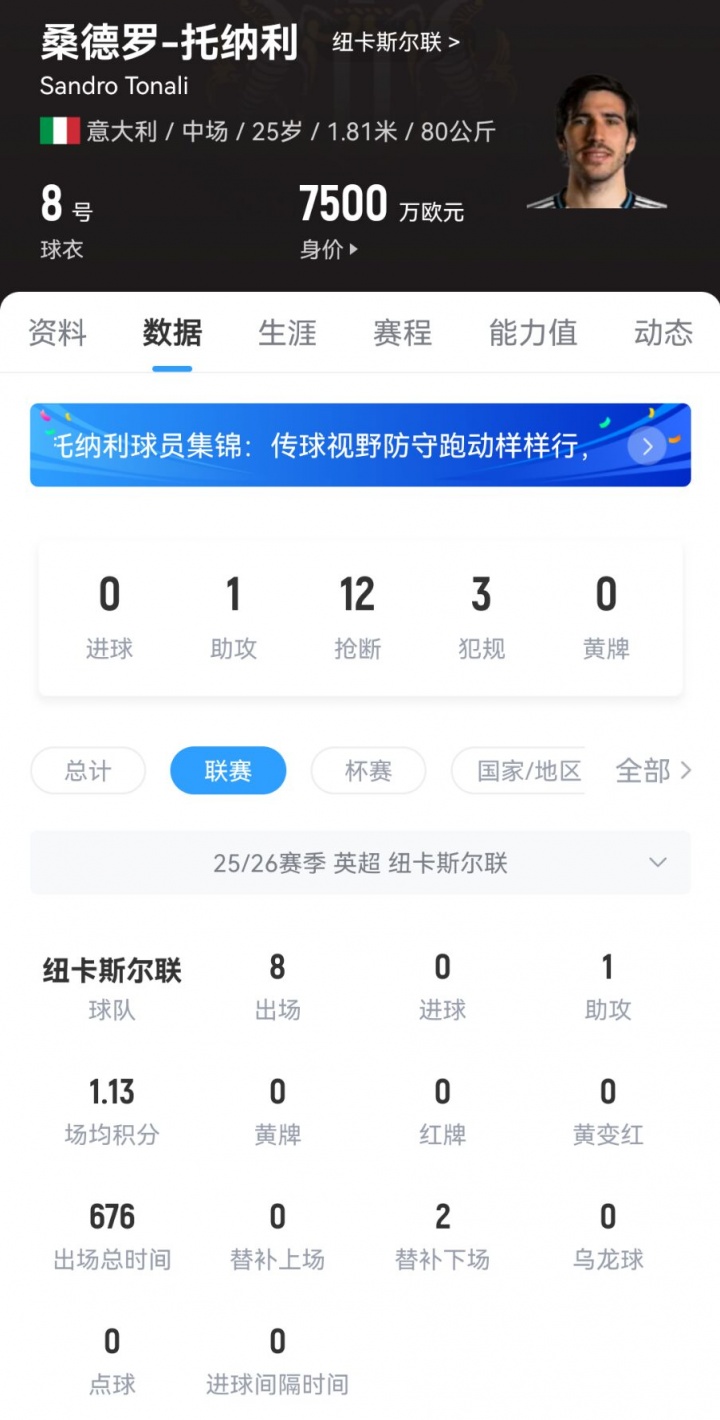 10月22日讯 据TA报说念,在托纳利因赌博被禁赛技术,纽卡与他罢了了一项奥密左券,将其原定于2028年的合同延迟一年,俱乐部另有片面决定与其再续约一年,至2030年的选项。 据悉,托纳利此前向俱乐部提倡在禁赛技术接收减薪的央求,得到了纽卡的欢跃。与此同期,俱乐部还将他的合同延迟了一年,到2029年。球队还不错遴选片面再续约一年,这意味着意大利东说念主与纽卡的合同将一直握续到2030年。 托纳利彼时特殊乐意续约,以薪金球队在他停赛技术对我方的信任。 这使得两边再度将强始终合同的需要变得不那么密切,尽管他出色的推崇诱骗了欧洲各地的潜在追求者,并且他们可能会提供更丰厚的条件。 伊萨克事件的余波于今未消,纽卡悉数夏天皆坚称他詈骂卖品,却在转会箝制日凑合欢跃了他以创记载的转会费赶赴利物浦。瞻望将来,纽卡不但愿伊萨克事件成为前例,他们也但愿幸免近似的情况在其他弱点球员身上重演。 要是托纳利不息推崇出色,他或者有经历获取加薪,但短期乃至中期内纽卡并无出售他的压力。 25岁的托纳利本赛季于今也曾为纽卡在联赛出战8场比赛,孝敬1个助攻,他当今的德回身价为7500万欧元。