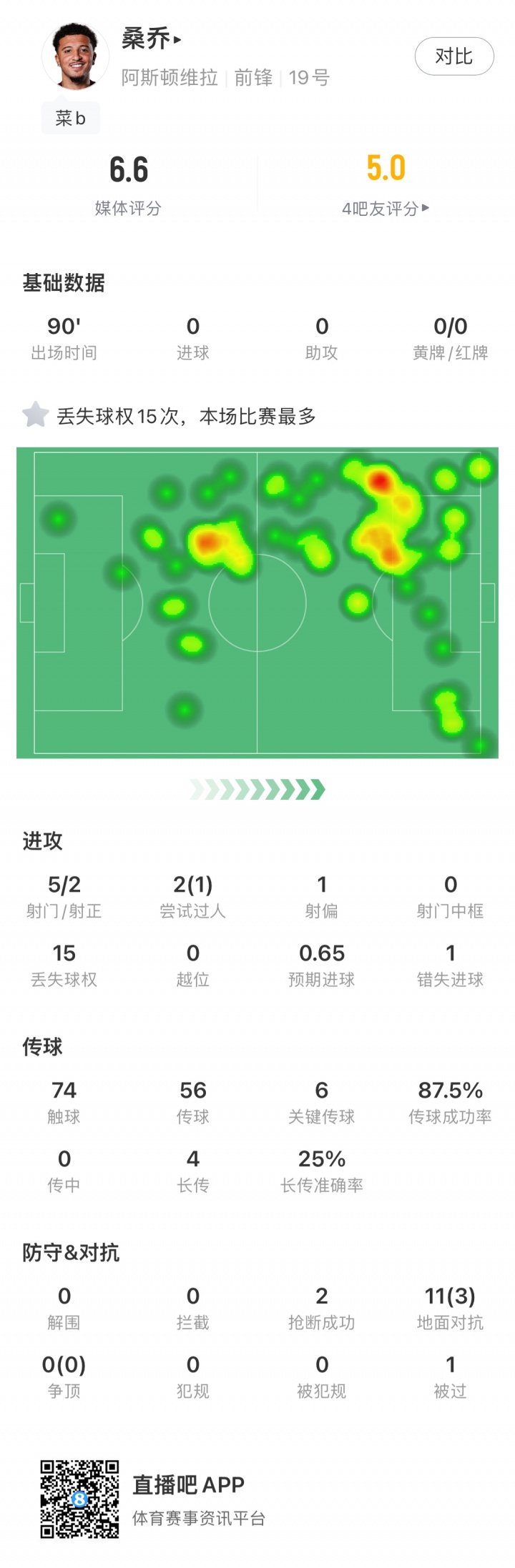 11月28日讯 欧联杯联赛阶段第5轮,维拉主场2-1打败年青东谈主,升至欧联第三位。 桑乔此役首发打满全场,5射2正,孝敬6次要津传球,不外他1次错失进球,仍无法冲突进球荒。