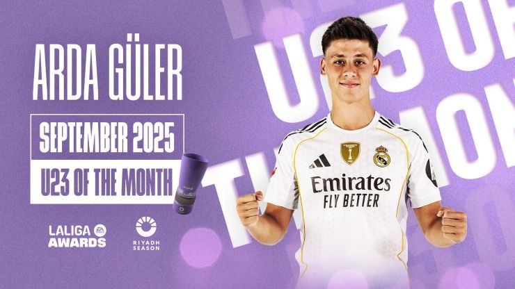 9月30日讯 官方音尘,居勒尔荣获9月份西甲最好U23球员奖, 在9月份,居勒尔凭借出色的进展匡助皇马在4场西甲赢下了3场,孝顺2球2助攻。 这是居勒尔第二次获...