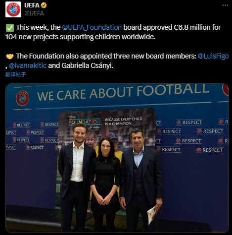 11月8日讯 欧足联音书,欧足联儿童基金会董事会在本周批准了680万欧元的资金,用于接济大家限度104个新诞生的儿童救济阵势。 基金会还新任命了三位董事会成员:路易斯-菲戈、伊万-拉基蒂奇和加布里埃拉-恰尼(Gabriella Csányi,匈牙利演员)。 |